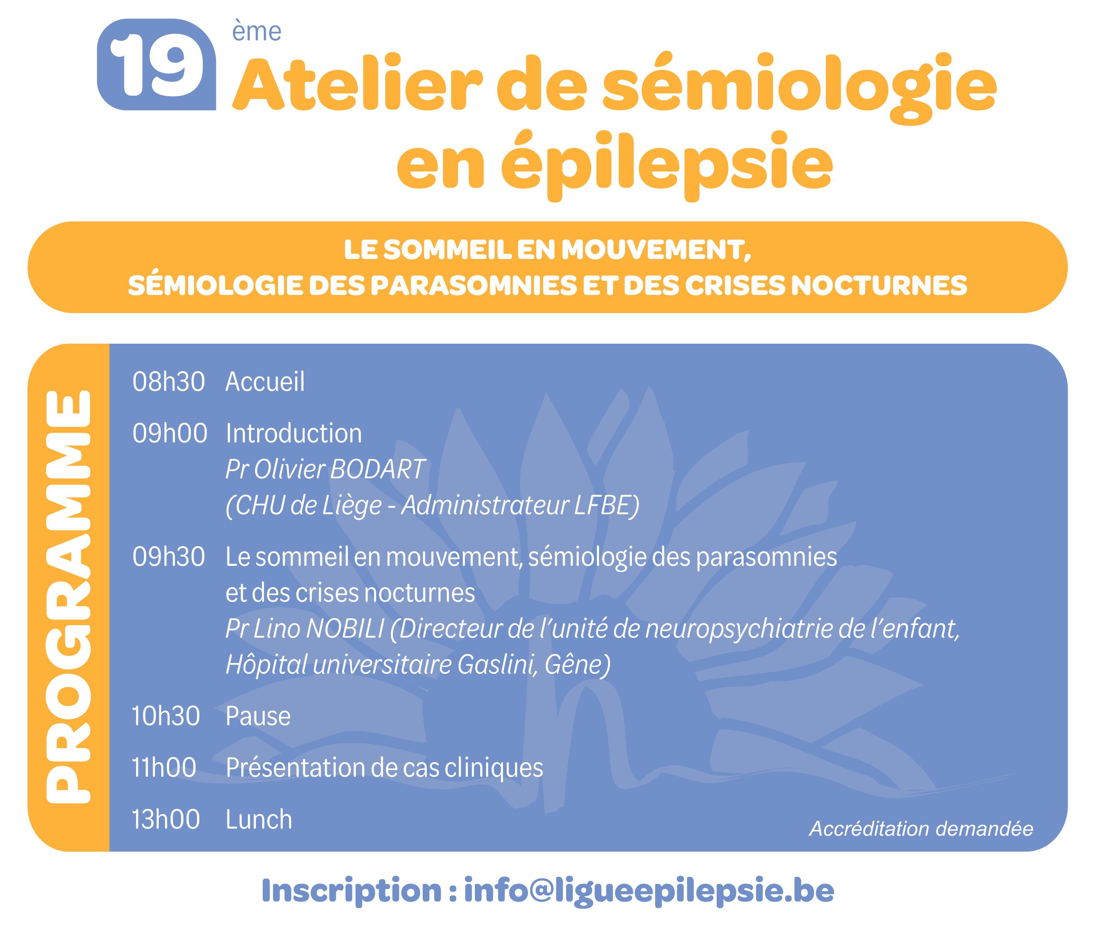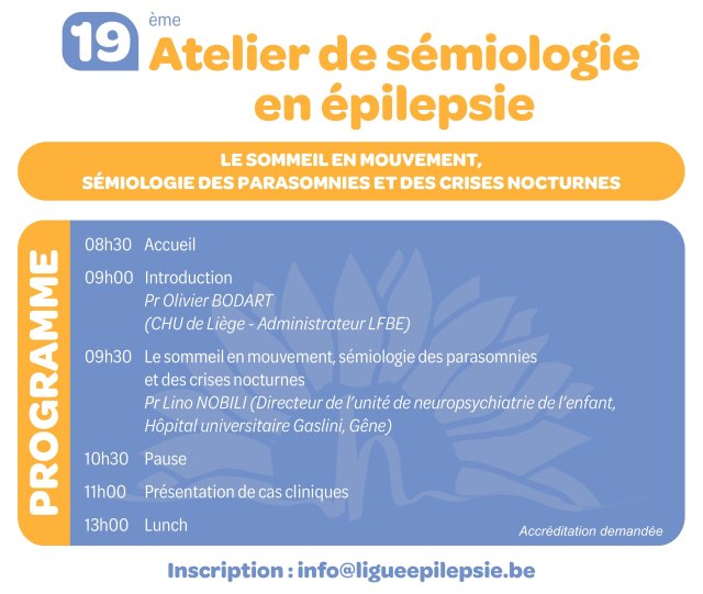 Le 19ème Atelier de sémiologie en épilepsie se tiendra le samedi 13 juin (8h30-14h) à Genval.