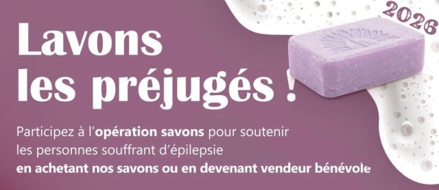 Pour la Ligue, elle donne le COUP D’ENVOI de la campagne « ÉPILEPSIE, LAVONS LES PRÉJUGÉS ! » à travers la VENTE DES SAVONS à la violette (couleur internationale symbole de l’épilepsie) afin de sensibiliser le public et récolter des fonds pour aider les patients.